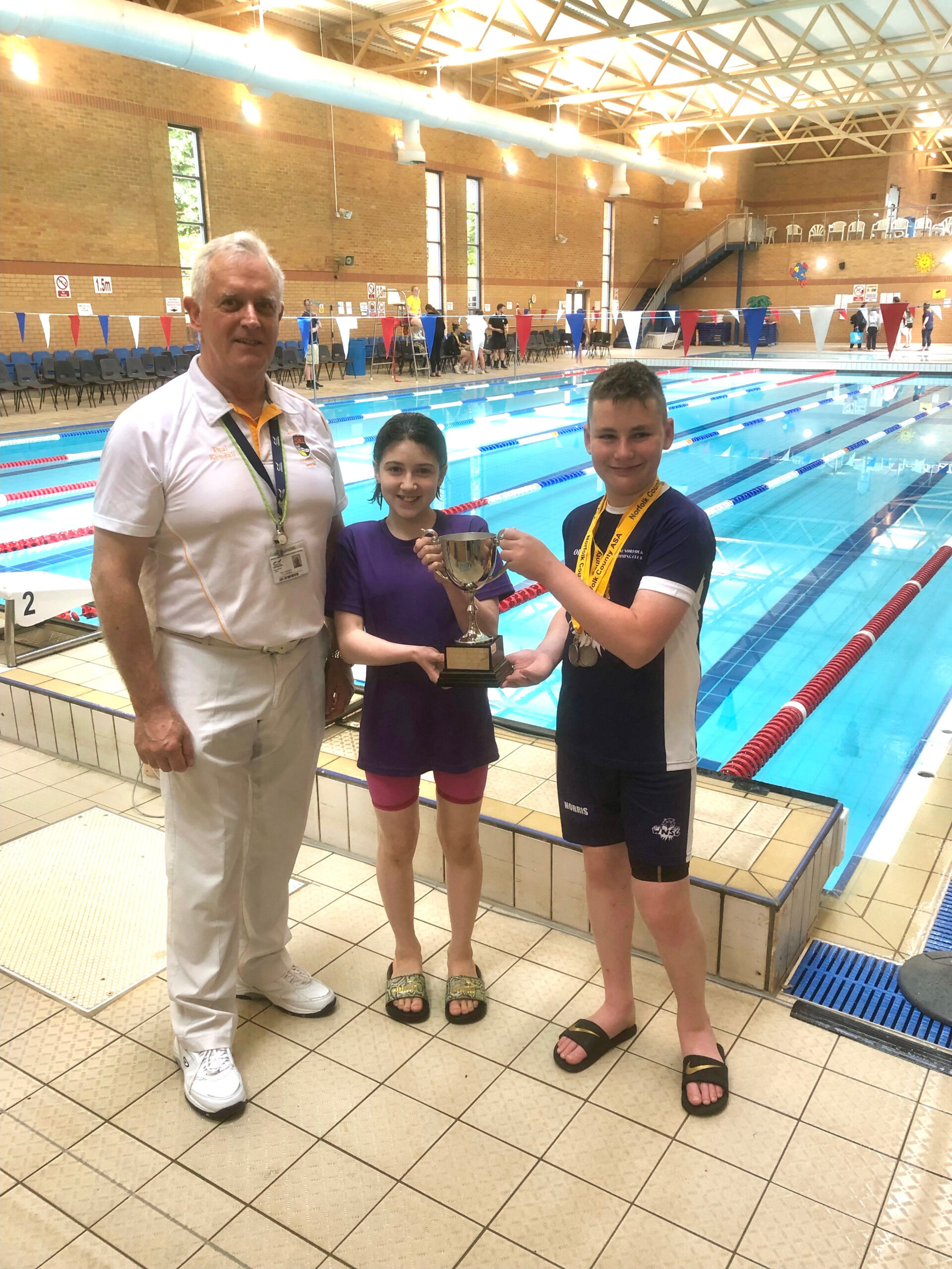 With West Norfolk at the top of the leaderboard at the end of Sunday afternoon, twelve year old Ruby Jackson and thirteen year old Oliver Norris were granted the honour of collecting the trophy from former Norfolk ASA President Paul Kendall.